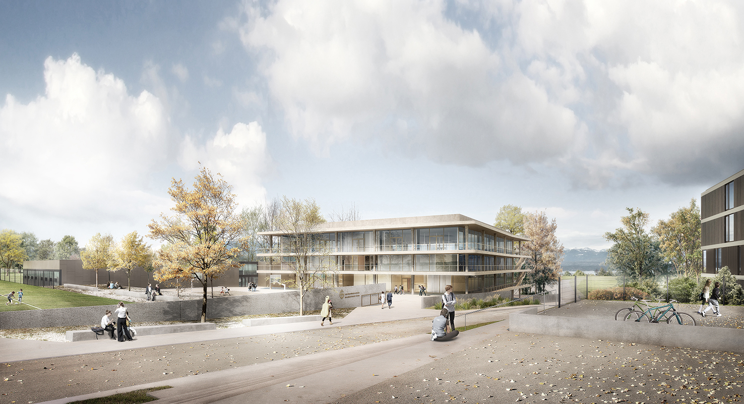 Bâtiment multifonctionnel Ecole Internationale de Genève - Campus de la Châtaigneraie (GE) - MEP 2018, projet lauréat. Réalisation: 2022-