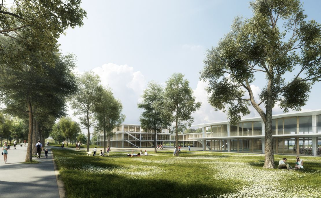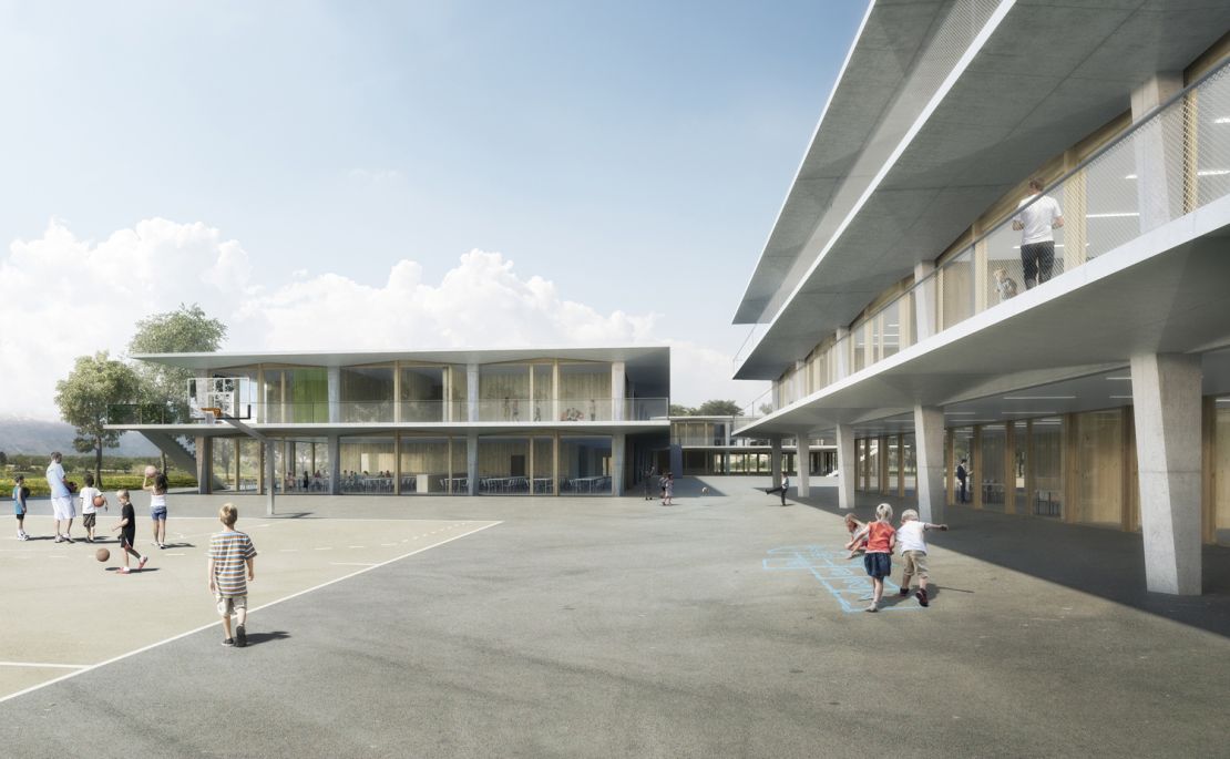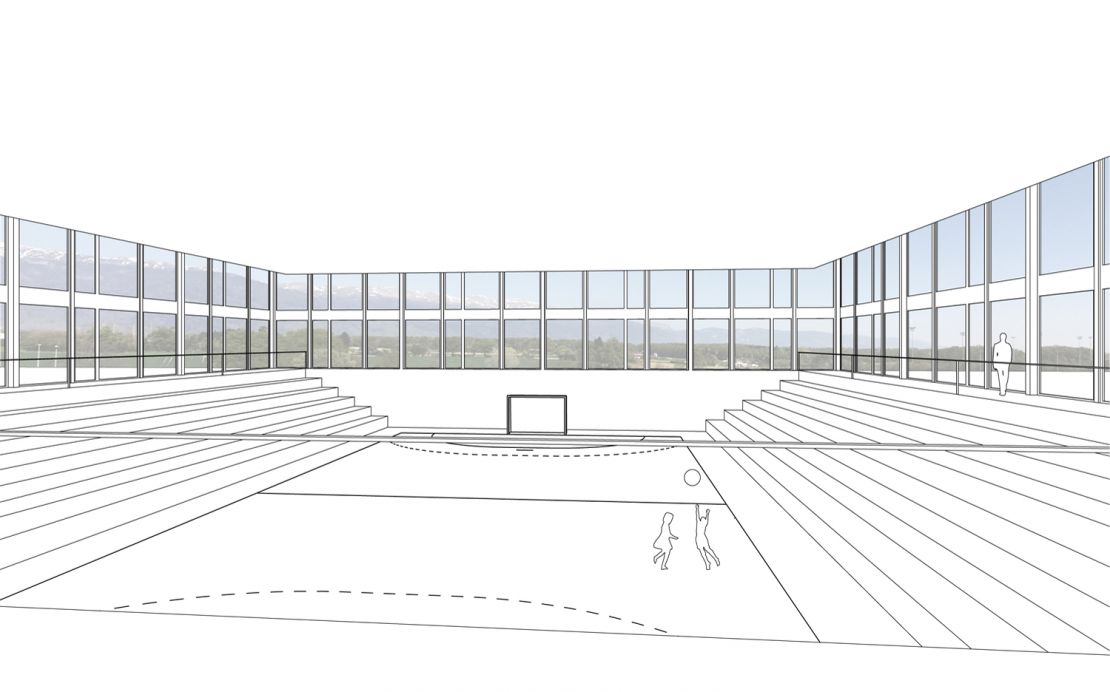 Située en limite de la couronne urbaine genevoise, cette infrastructure comprend une école primaire, une école spécialisée, des espaces socioculturels et une salle de sports. En relation directe avec le grand paysage, elle forme un ensemble à l'échelle du quartier.