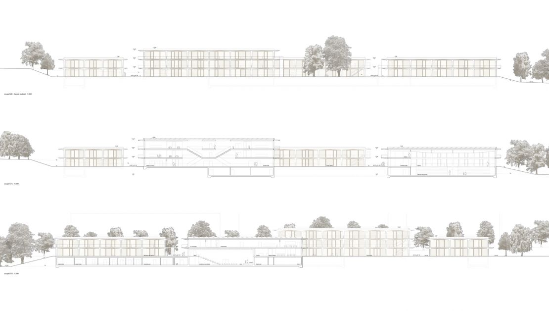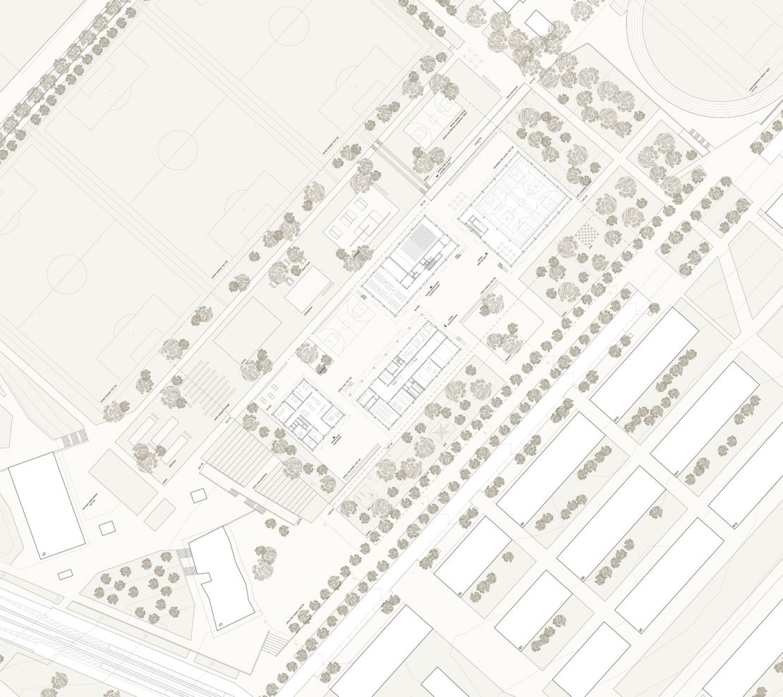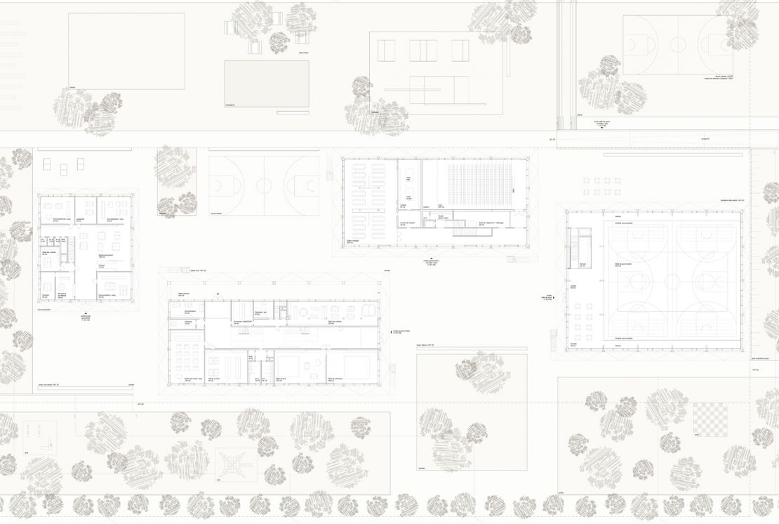 Nous avons organisé le projet en quatre pavillons autonomes. Chacun remplit une fonction tout en profitant de synergies avec les autres. Par le biais d'un système constructif hybride, l'architecture a une identité duelle qui intègre cet équipement public dans son contexte, tout en créant une atmosphère intérieure calme et singulière.