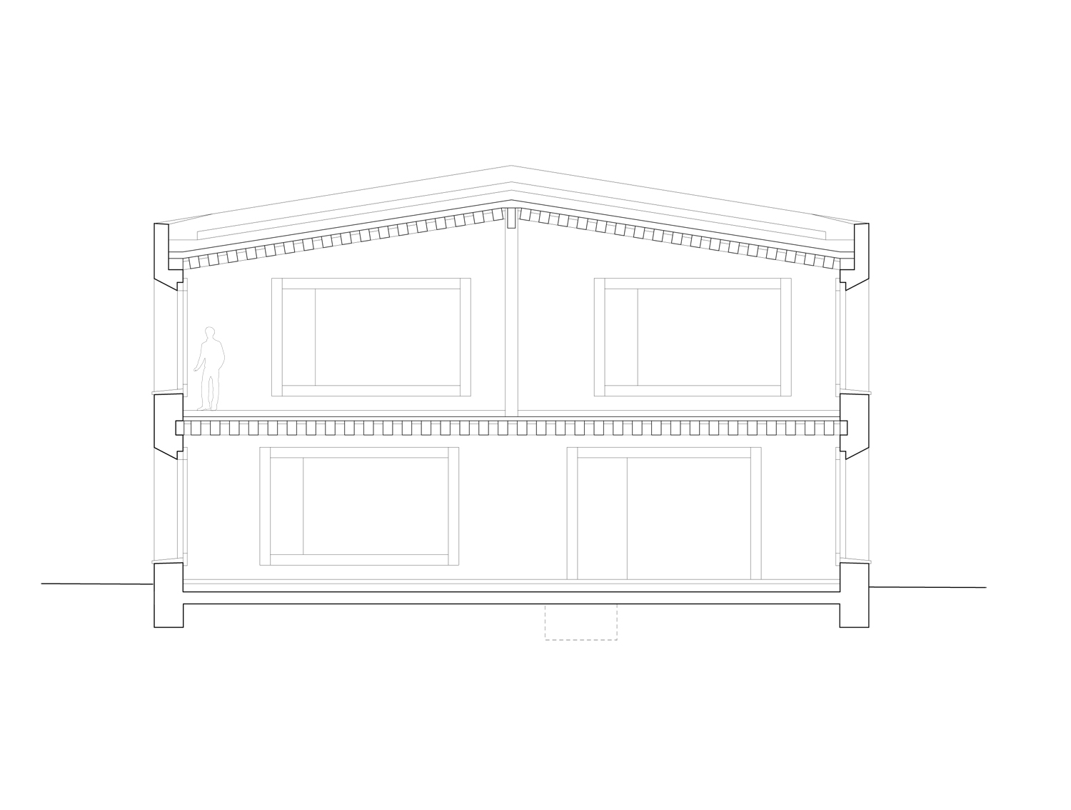 Le système constructif s'inspire des maisons villageoises et des fermes. Il comprend une structure verticale monolithique en béton isolant. Les dalles et les toitures sont en bois ou mixtes. Les murs sont massifs, percés de grandes ouvertures habillées par des fenêtres en bois. Les façades sont recouvertes de crépi.