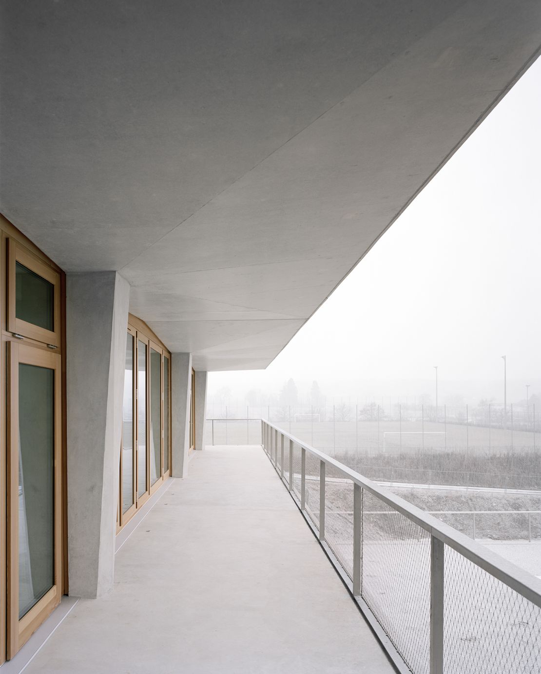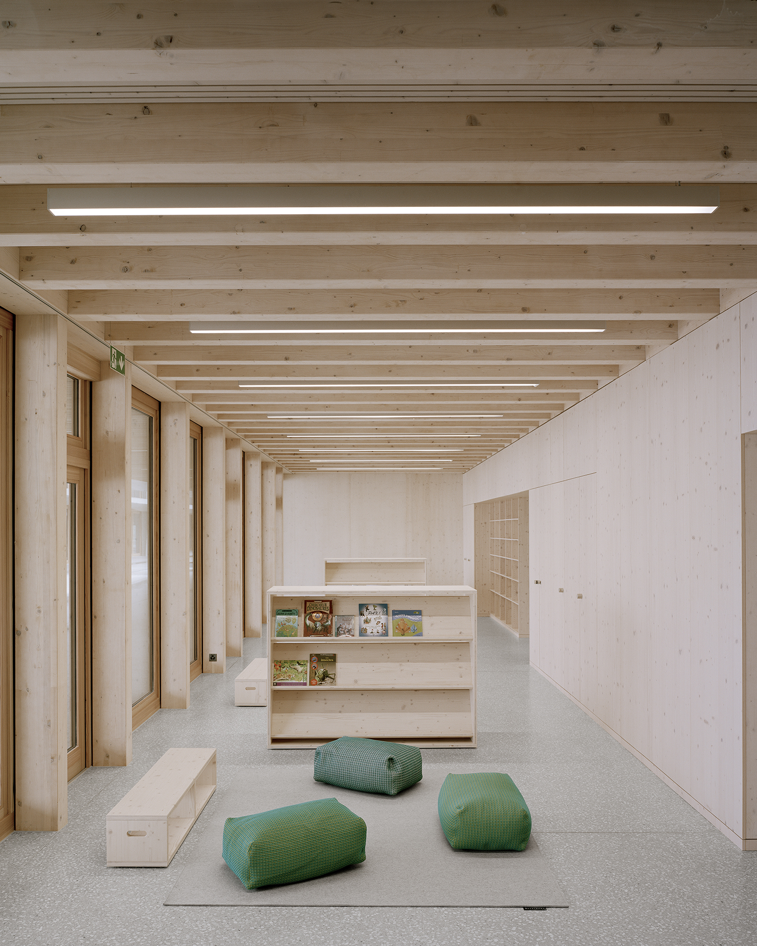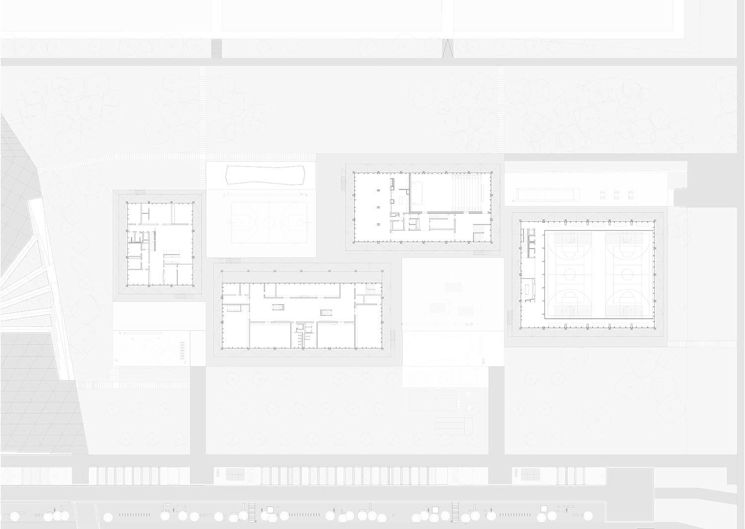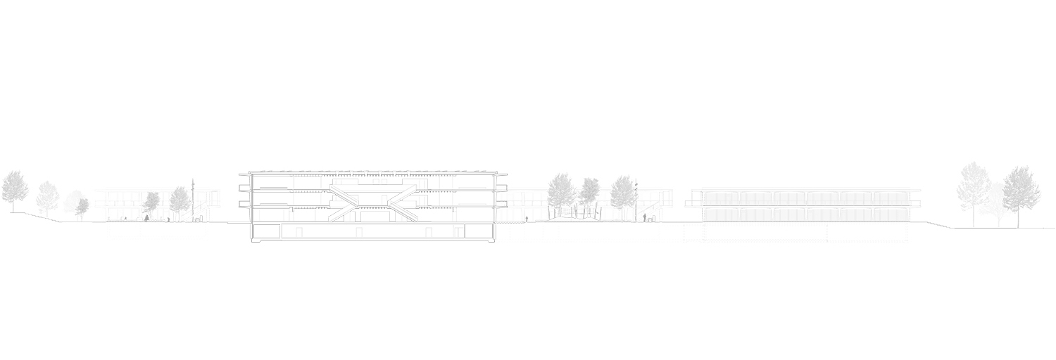 Nous avons organisé le projet en quatre pavillons autonomes. Chacun remplit une fonction tout en profitant de synergies avec les autres. Par le biais d'un système constructif hybride, l'architecture a une identité duelle qui intègre cet équipement public dans son contexte, tout en créant une atmosphère intérieure calme et singulière.
