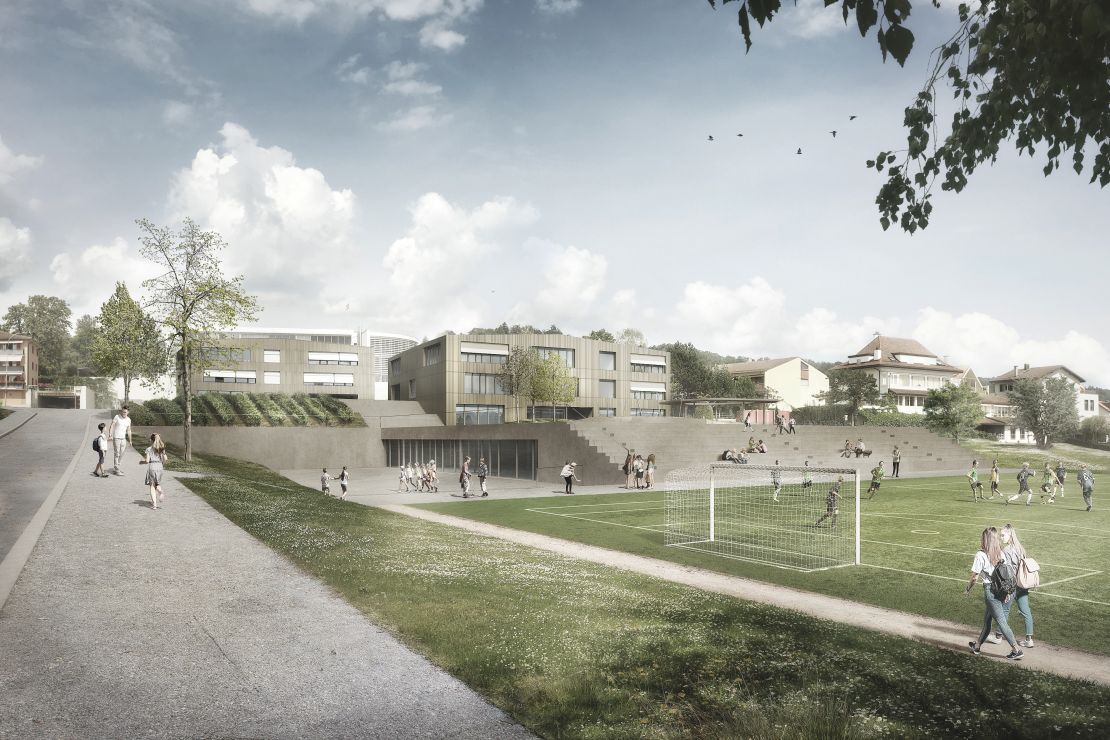 Notre proposition fractionne ce programme en trois bâtiments compacts. Le but était d'intégrer la nouvelle construction aux abords du site et à la zone viticole voisine. Nous voulions également renforcer et prolonger les parcours en les hiérarchisant au fil de la pente, à la manière de grands paliers.