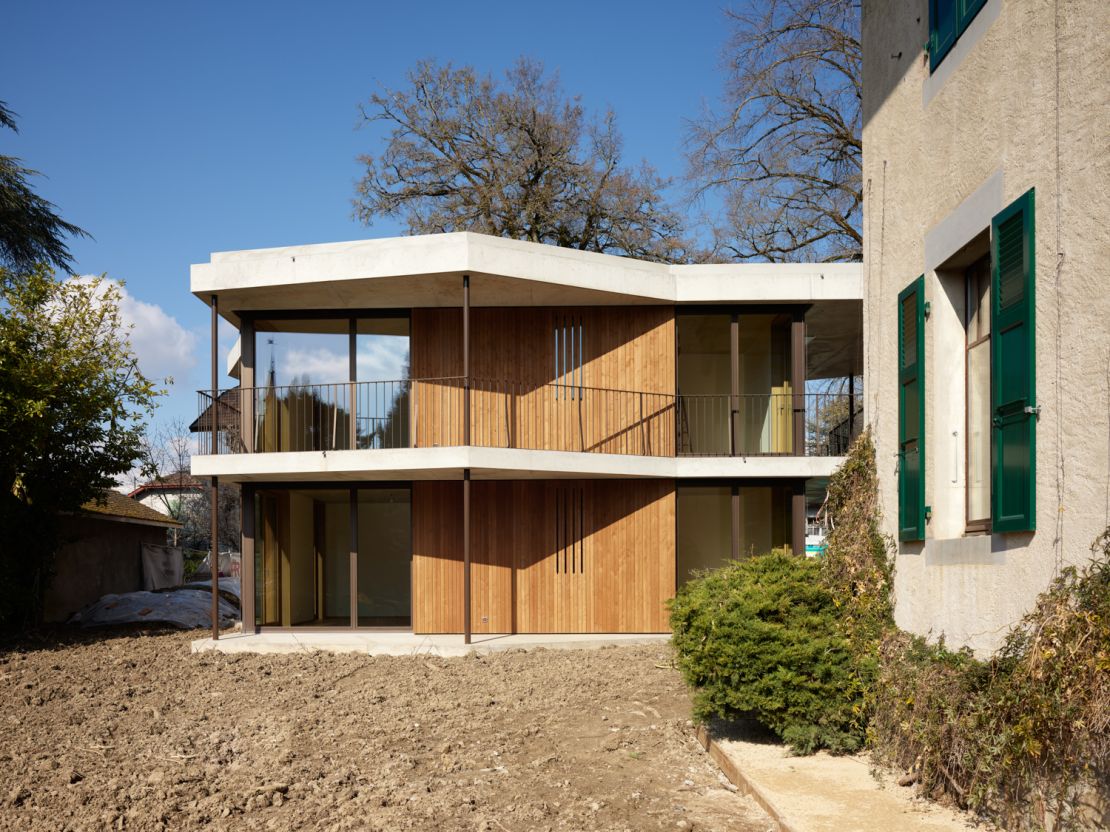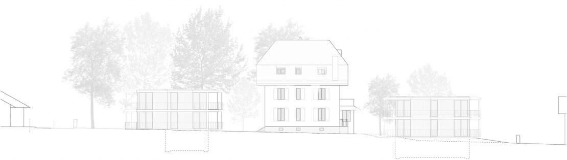 Cet ensemble d'habitats groupés s'inscrit dans le cadre d'une densification de la zone villas de cette commune genevoise. Le projet consiste en deux pavillons de deux niveaux, placés de part et d'autre d'une ancienne maison bourgeoise datant de 1912.