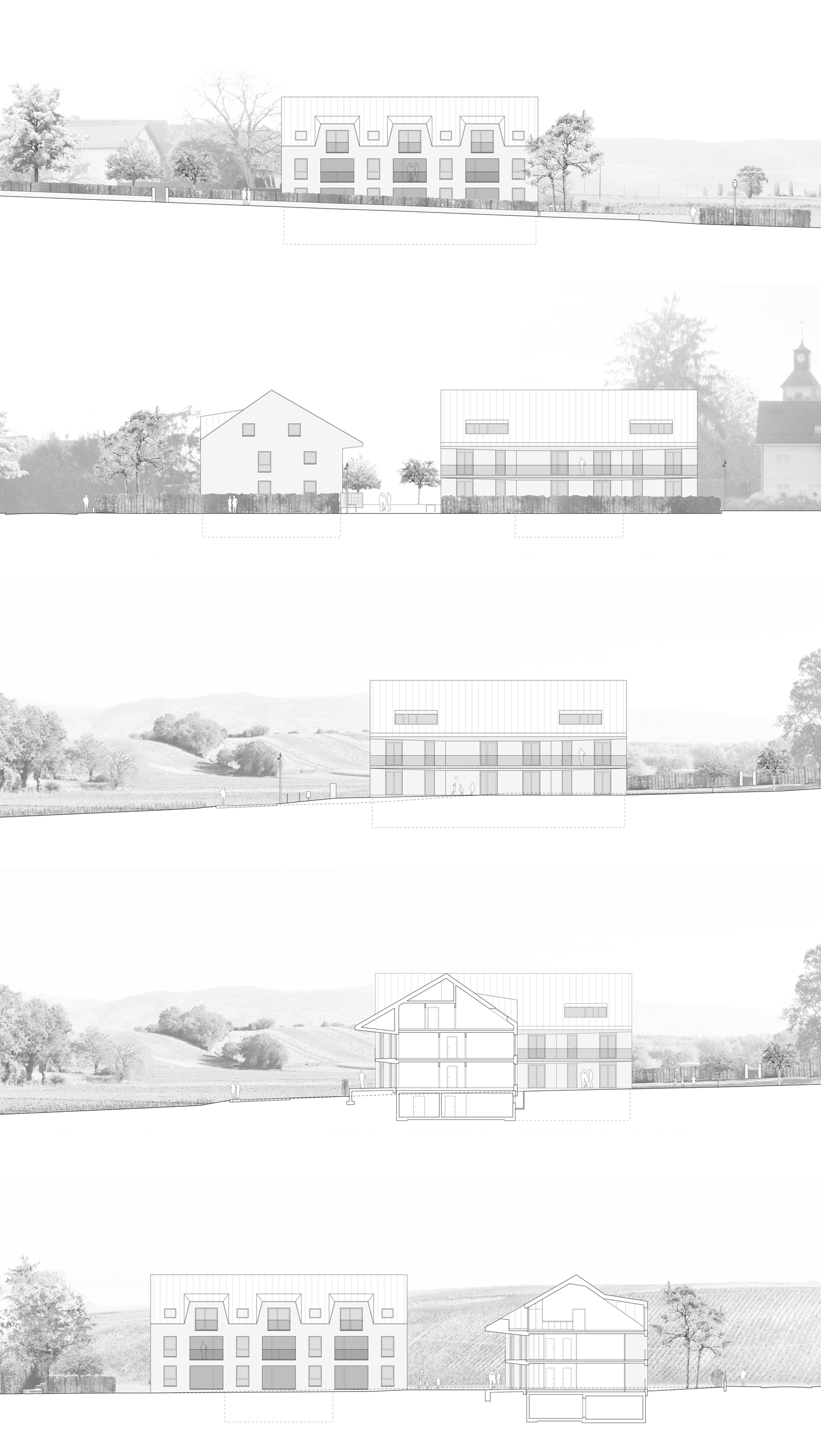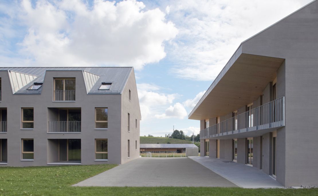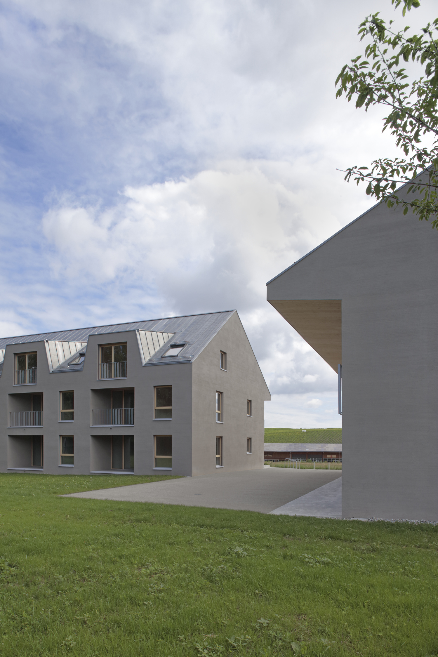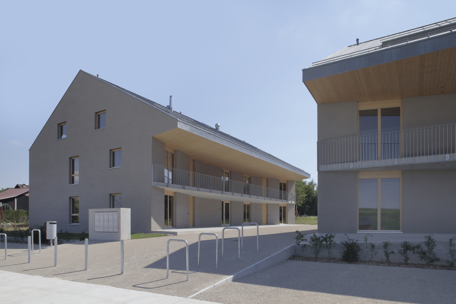 La première intention du projet consistait à intégrer ces immeubles de campagne de manière fine dans le site de la commune. Nous voulions que leur architecture ait un caractère à la fois rural, domestique et contemporain. Il s'agissait également d'établir une relation forte entre les deux immeubles par le biais d'une cour centrale ouverte sur un verger situé en limite de parcelle.